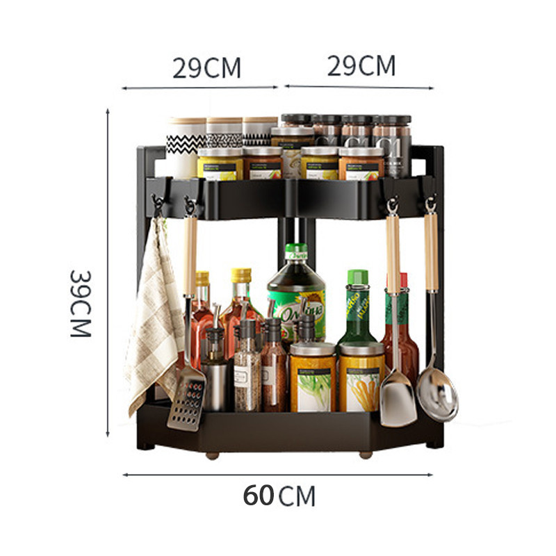 Díky inovativnímu designu s úhlem 90° se multifunkční rohová police dokonale hodí do rohů, aby se maximálně využil dostupný prostor. Širší spodní police je ideální pro ukládání větších předmětů, zatímco užší horní police umožňuje organizovat drobnější koření a přísady. Průhledný úložný prostor a snadný přístup zaručují, že veškeré kuchyňské potřeby najdete na první pohled.