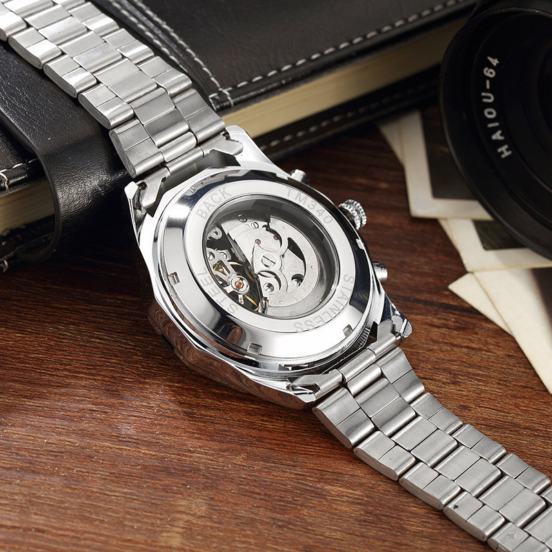 Luxusní pánské mechanické hodinky Skeleton-stříbrná