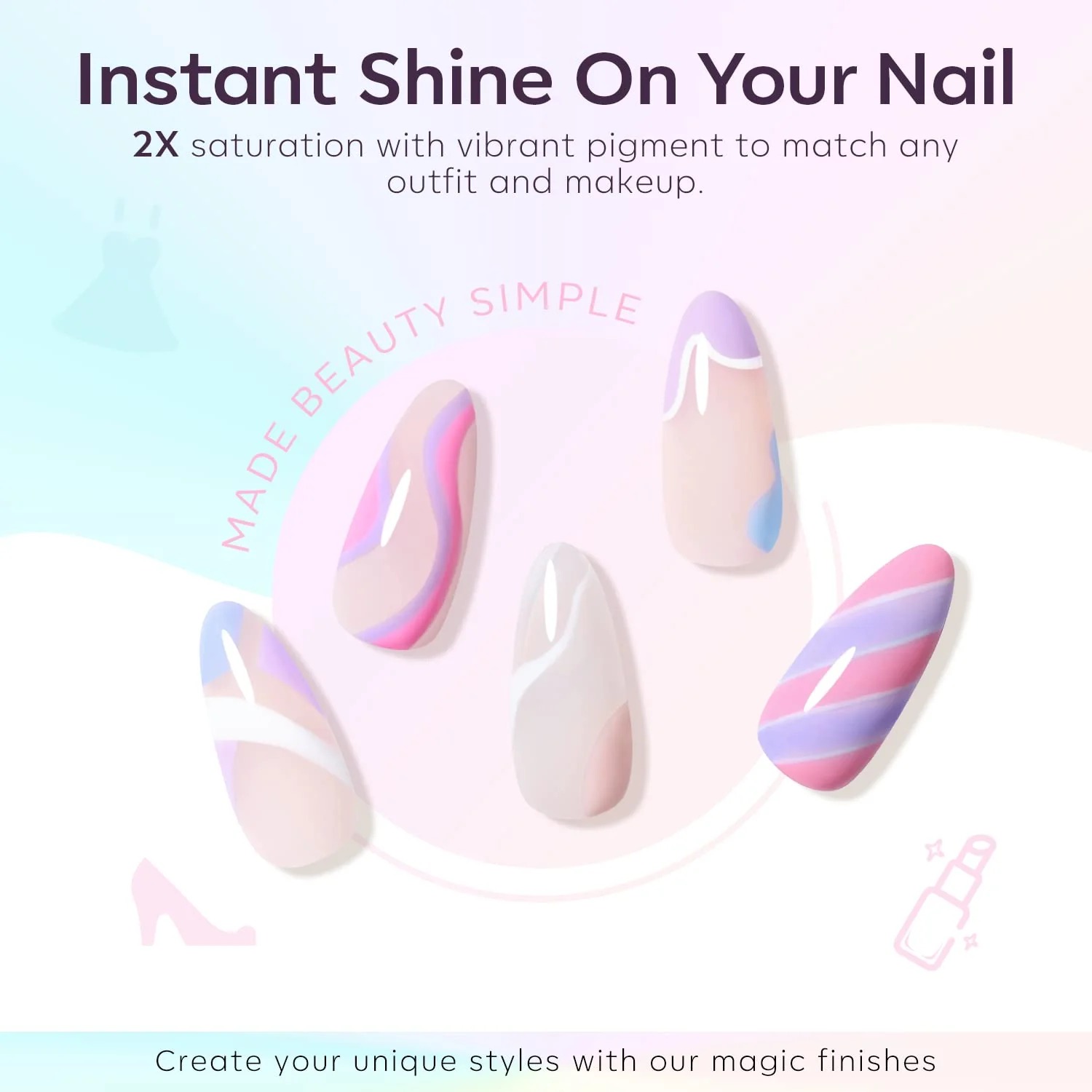 Vysoce pigmentovaný gel lak krásně kryje už v jedné vrstvě a okamžitě dodá nehtům oslnivý lesk. Skvěle ladí s vaším make-upem i oblečením a tvoří ideální základ pro kreativní vzory či zdobení.
