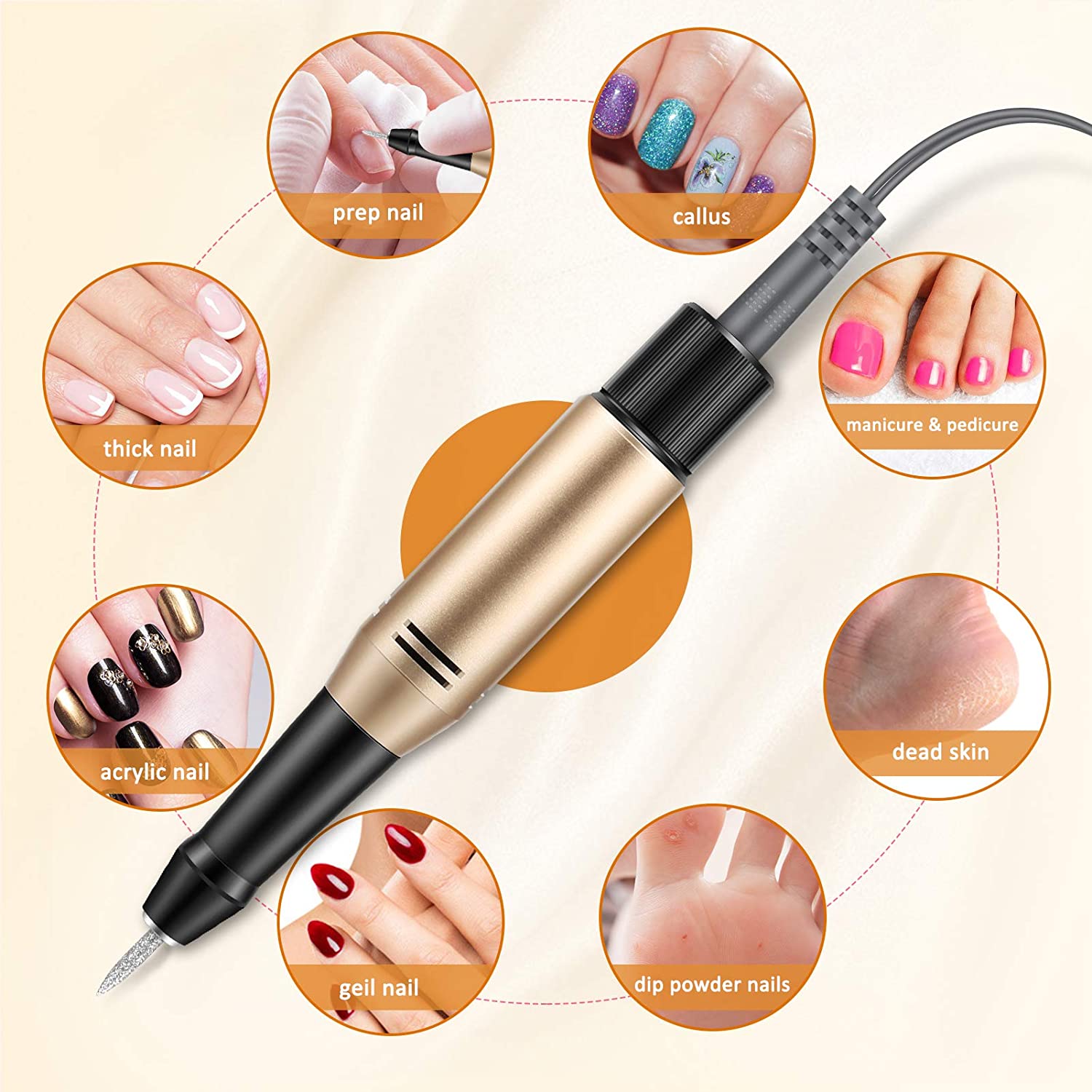 Tento profesionální pilník na nehty lze použít k manikúře, pedikúře, odstraňování mozolů atd. 30 000 otáček za minutu je vhodných k odstraňování laku na nehty a gelu pro snížení tloušťky nehtů. Moderní, bezpečný a účinný přístroj pro péči o ruce a nohy.