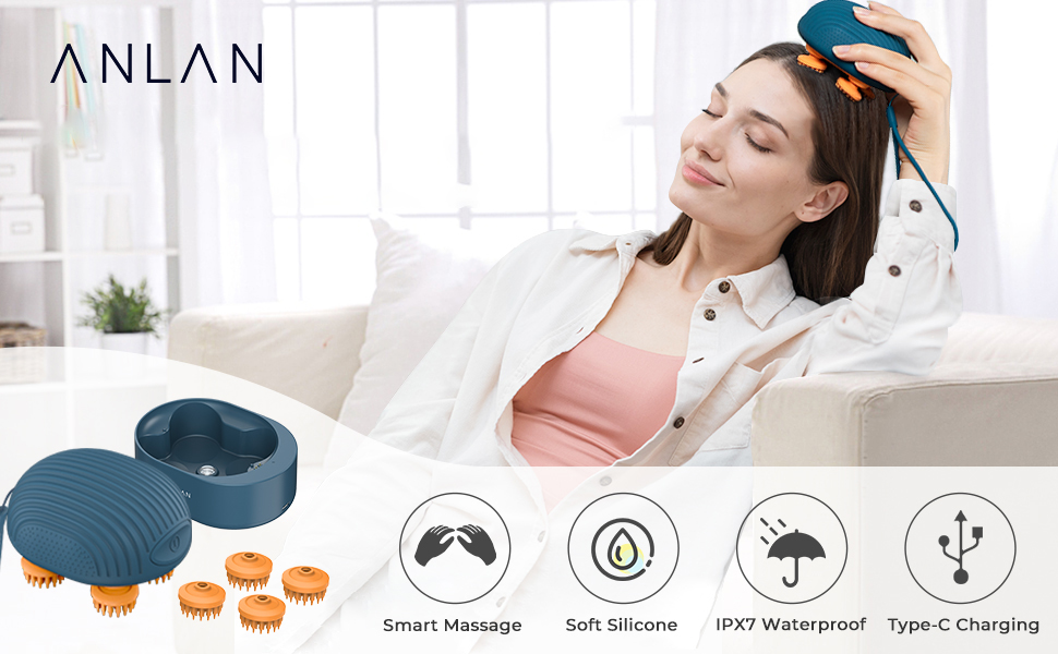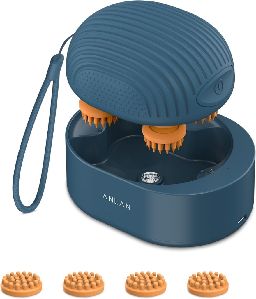 ANLAN relaxační masážní přístroj na pokožku hlavy – bezdrátový, vodotěsný, se 4 masážními hlavicemi