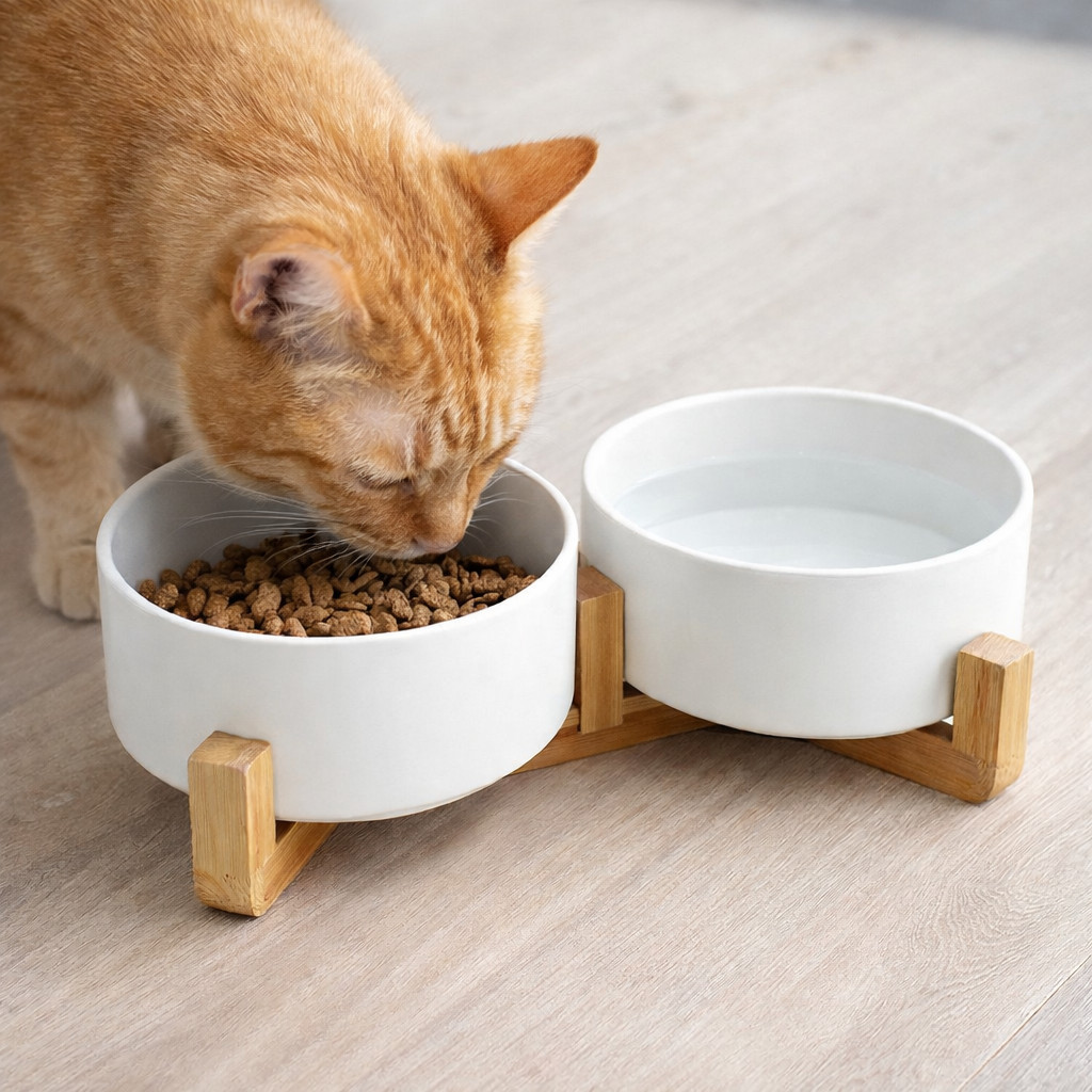 Dvojitá keramická miska pro kočky a psy – ergonomická, s ochranou krku