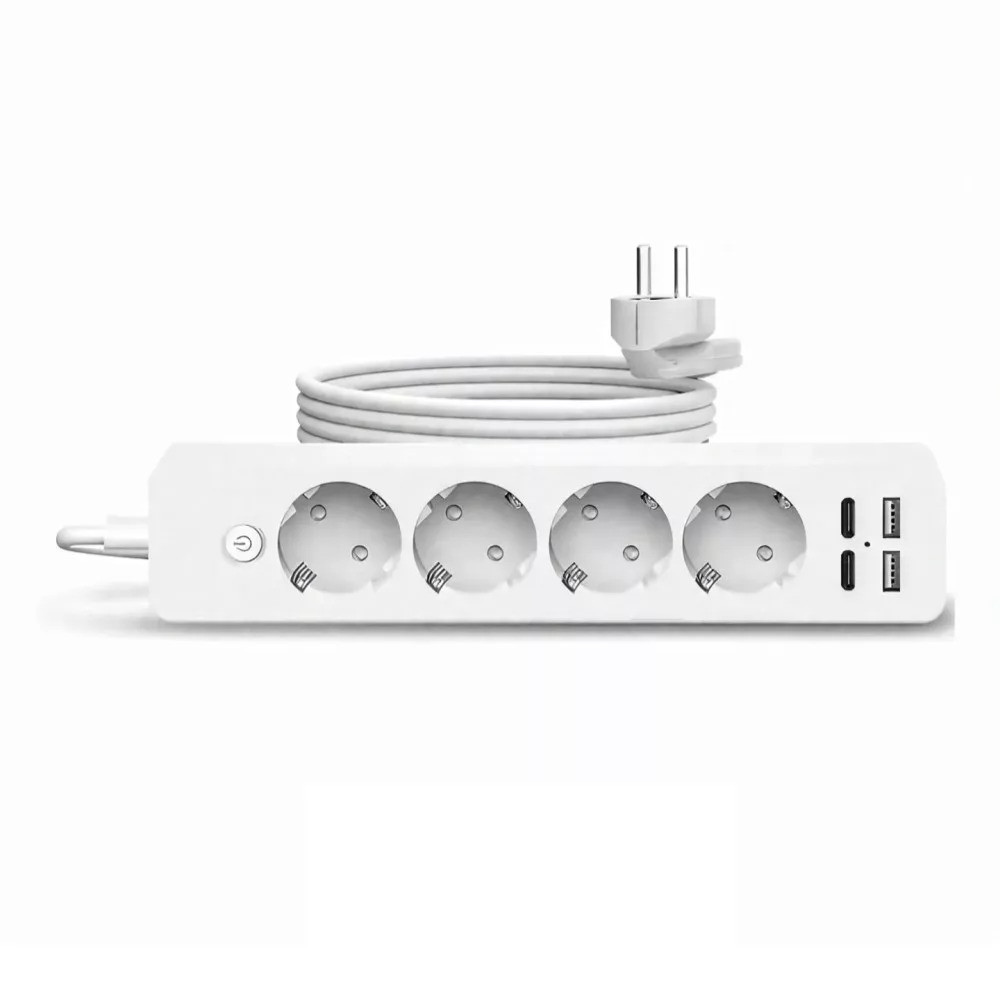 Tato moderní síťová rozvodka je ideální volbou do domácnosti i kanceláře, pokud chcete bezpečně a pohodlně připojit více zařízení. Kromě 4 standardních evropských zásuvek nabízí také 2 USB‑A a 2 USB‑C porty, takže můžete současně nabíjet klasické spotřebiče, chytrý telefon, tablet nebo dokonce notebook.