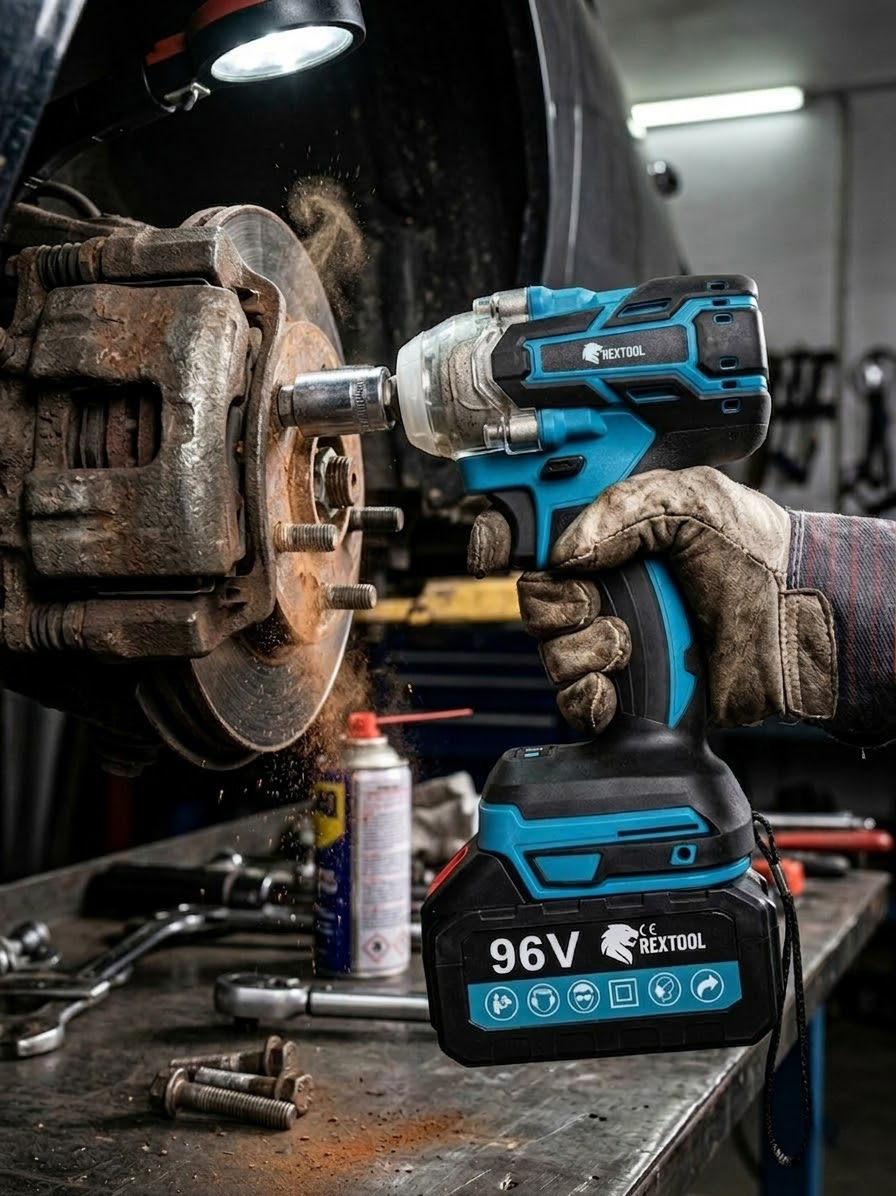 Rextool profesionální sada rázového utahováku se dvěma akumulátory – 96 V
