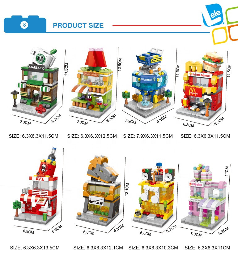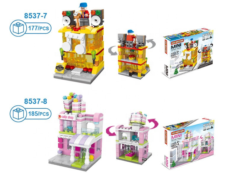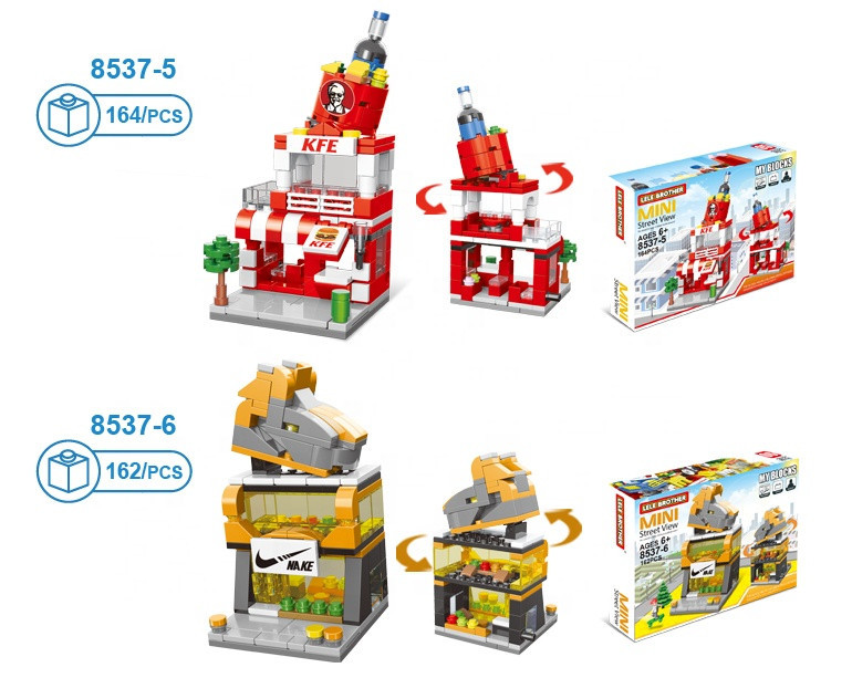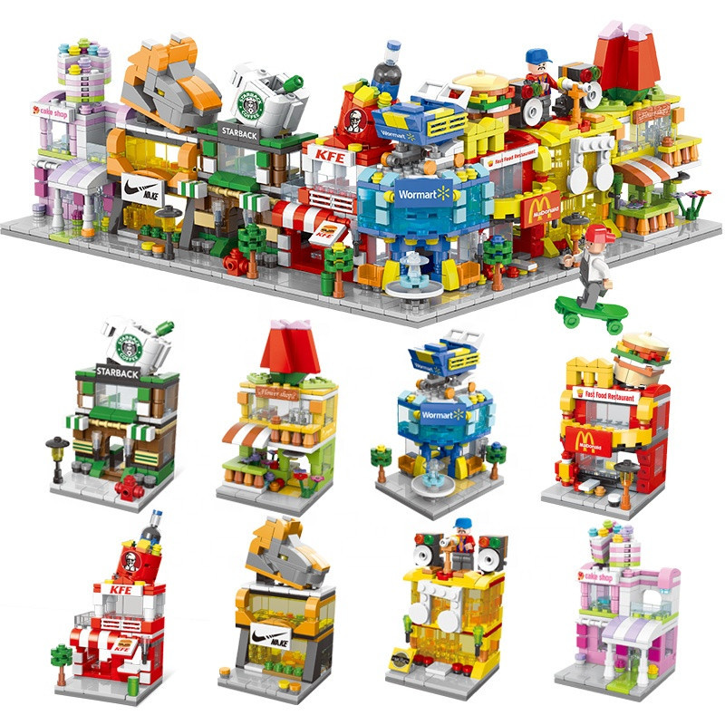Tento set obsahuje 8 samostatně stojících budov, které lze stavět jednotlivě, nebo je spojit do celé pěší ulice.